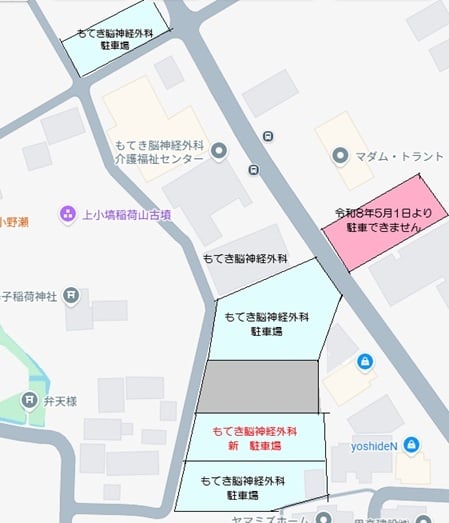 水火会からのお知らせトップページ > 水火会からのお知らせ新着情報とお知らせ 一覧へ戻るR8.5.1より一部駐車場の位置が変更となります2026-03-23一部駐車場の位置変更のご案内平素より当診療所をご利用いただき、心より御礼申し上げます。このたび、より安全にご利用いただくため、一部駐車場の場所を変更することとなりました。【ご利用開始日】 令和8年5月1日【新しい駐車場】 上部の案内図にて位置をご確認くださいなお、診療所前の駐車場は、引き続きお使いいただけます。ご来院の際は、ご注意くださいますようお願いいたします。ご不明な点がございましたら、受付までお声がけください。